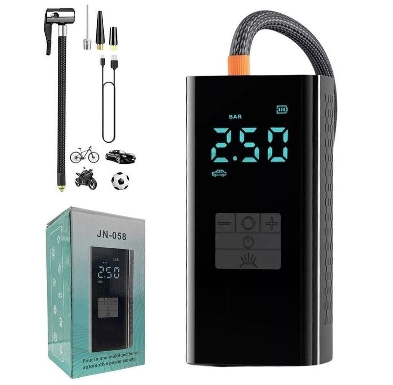 Mantén tus neumáticos siempre en la presión adecuada con el Inflador Automático de Neumáticos JN-058. Compacto, eficiente y fácil de usar, este compresor eléctrico es perfecto tanto para el uso diario como para emergencias en carretera. Su pantalla digital de alta precisión y su sistema de apagado automático garantizan seguridad y comodidad en cada inflado.